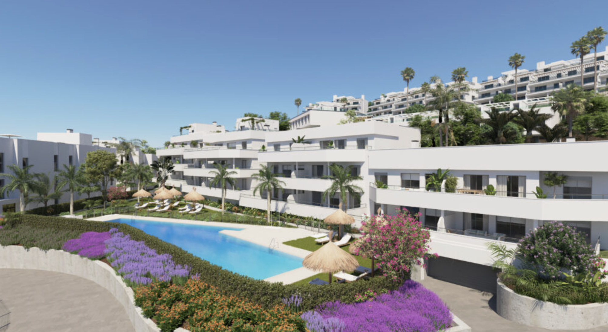 Oceana Gardens II is een modern nieuwbouwproject met stijlvolle appartementen en penthouses op de New Golden Mile, tussen Marbella en Estepona.
